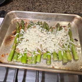 Arrange asparagus on baking sheet. Set aside.