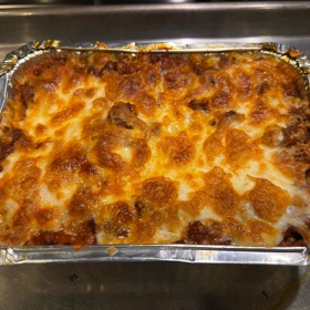 7. Repeat layers until you reach the top, and on the last layer of meat, cover with just mozzarella cheese.