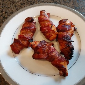 Season chicken tenders with your favorite rub. (Low sodium is better as it can wind up too salty with the bacon.)